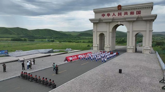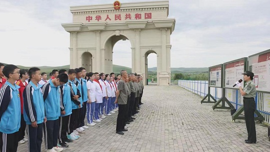 在阿爾山國(guó)門(mén)前,老兵王云剛正在給學(xué)生們講述他當(dāng)兵時(shí)的戰(zhàn)斗故事,“1969年4月,在武器運(yùn)輸途中,我們?cè)獾綌耻娹Z炸機(jī)轟炸,立即做出反擊……”講起那段保衛(wèi)祖國(guó)的光榮經(jīng)歷,他依舊很激動(dòng)。