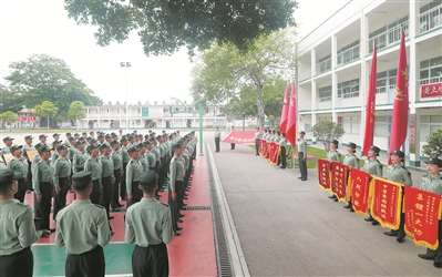 圖為駐香港部隊新兵下連舉行入連儀式。