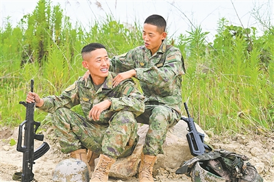 第73集團軍某旅的陳明哲、陳明宇是一對雙胞胎兄弟,同年參軍入伍。服役期間,兩人精武強能、相互較勁,在各自連隊都是響當當?shù)挠柧毤庾印?/p>