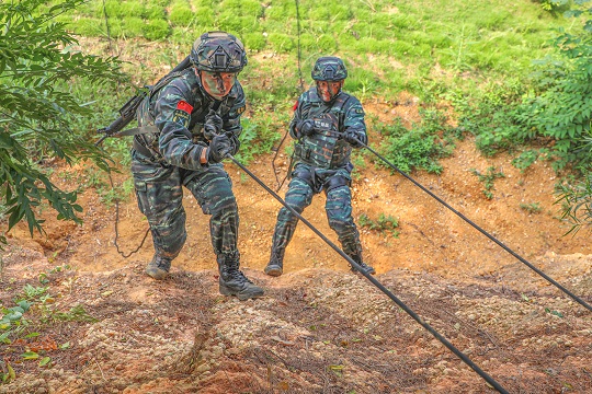 圖為特戰(zhàn)隊(duì)員正在進(jìn)行攀登訓(xùn)練。