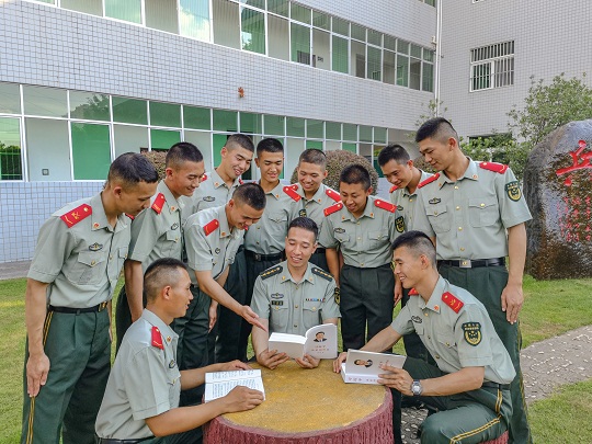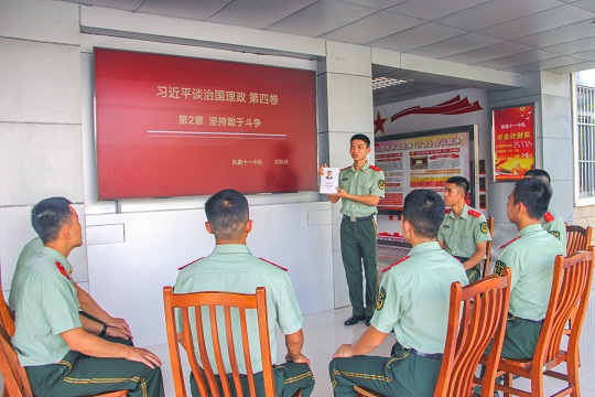 圖為官兵通過開展讀書交流會(huì)學(xué)習(xí)《習(xí)近平談治國(guó)理政》第四卷。
