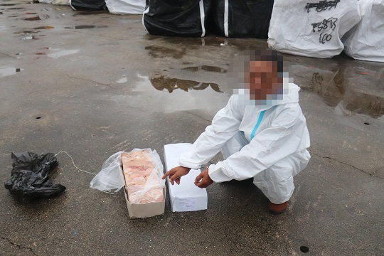經(jīng)過2個(gè)多小時(shí)的搜索,海警巡邏艦成功在目標(biāo)海域發(fā)現(xiàn)嫌疑船只,海警執(zhí)法員隨即依法進(jìn)行登船檢查。經(jīng)查,該嫌疑船船倉(cāng)內(nèi)裝有大量黑色及白色塑料袋,袋內(nèi)裝有疑似來自境外的凍豬耳、凍豬肚等凍品約190噸,現(xiàn)場(chǎng)抓獲3名嫌疑人,且隨船未能找到該批凍品的任何合法來源證明。