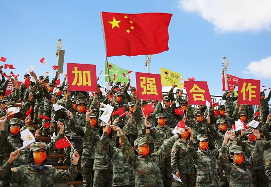 中國參賽隊操控步戰(zhàn)車一路風馳電掣,以穩(wěn)定的發(fā)揮穿越層層障礙沖過終點。俄羅斯、委內瑞拉、伊朗、白俄羅斯參賽隊依次發(fā)車,隊員們配合默契,精準駕駛戰(zhàn)車順利完成比賽。至此,“蘇沃洛夫突擊”項目單車賽18個車組的比拼全部結束,中國參賽隊3個車組包攬單車賽“最佳車組”前三名,總成績排名第一,與俄羅斯、白俄羅斯、伊朗參賽隊一起晉級接力賽。