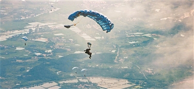 圖為特戰(zhàn)隊(duì)員利用翼傘進(jìn)行武裝遠(yuǎn)程滲透。楊越旺 攝