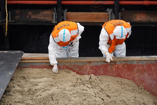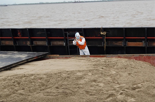 當(dāng)日清晨,上海寶山海警局獲悉,有1艘涉嫌非法運(yùn)砂的貨船進(jìn)入管轄海域,該局立即派遣正在巡邏的執(zhí)法船前往核查。執(zhí)法船接到命令后迅速前往其途徑海域攔截,經(jīng)過核查比對(duì),執(zhí)法艇在1小時(shí)內(nèi)迅速鎖定嫌疑船只。執(zhí)法人員登船后發(fā)現(xiàn),該船貨艙內(nèi)共裝有海砂1000余噸,且無(wú)法提供任何相關(guān)合法手續(xù),涉嫌非法運(yùn)砂。目前,案件正在進(jìn)一步偵辦中。