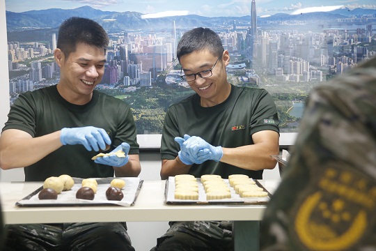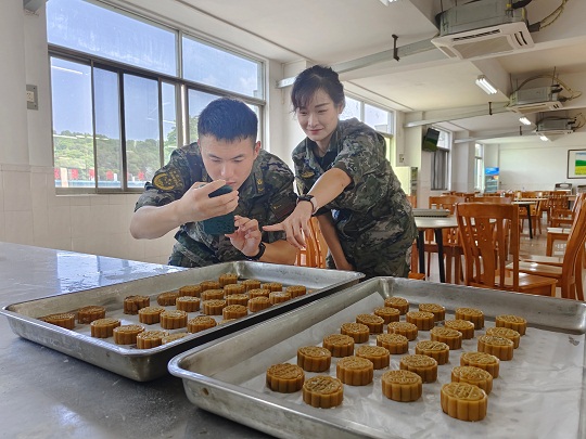 該局精心策劃相關(guān)事宜,提前定制特殊模具,指派專人指導(dǎo)月餅制作。為讓小小月餅吃出滿滿的“儀式感”,執(zhí)法員們將一抹抹鄉(xiāng)愁融進(jìn)了月餅里,把一句句祝福包在了月餅中?!爸袊?guó)海警”、“海疆衛(wèi)士”、“不忘初心”、“絕對(duì)忠誠(chéng)”……一個(gè)個(gè)獨(dú)具海警特色的月餅記錄了海警人的家國(guó)情懷。
