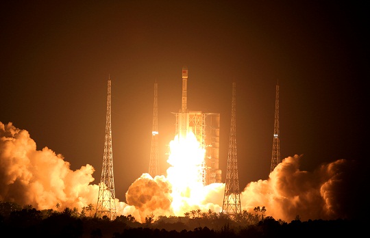 圖為9月13日21時18分,我國在文昌航天發(fā)射場使用長征七號A運載火箭,成功將“中星1E”衛(wèi)星發(fā)射升空。屠海超 黃國暢 魏來 攝