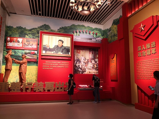 在“重整行裝再出發(fā)”專題展項(xiàng),“古田會(huì)議永放光芒”八個(gè)大字,將人們的思緒帶到福建省上杭縣古田村。1929年,紅四軍黨的第九次代表大會(huì)在此召開,確立了“思想建黨、政治建軍”的原則,確立了黨對(duì)軍隊(duì)的絕對(duì)領(lǐng)導(dǎo)。2014年,全軍政治工作會(huì)議在這里召開,對(duì)新時(shí)代政治建軍作出部署,恢復(fù)和發(fā)揚(yáng)我黨我軍光榮傳統(tǒng)和優(yōu)良作風(fēng),以整風(fēng)精神推進(jìn)政治整訓(xùn),全面加強(qiáng)軍隊(duì)黨的領(lǐng)導(dǎo)和黨的建設(shè),深入推進(jìn)軍隊(duì)黨風(fēng)廉政建設(shè)和反腐敗斗爭,推動(dòng)人民軍隊(duì)政治生態(tài)根本好轉(zhuǎn)。自此開啟思想建黨、政治建軍新征程。