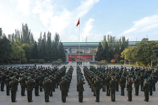 五星紅旗迎風(fēng)飄揚,雄壯國歌響徹軍營。10月1日,武警青??傟犅≈嘏e行升國旗儀式,用軍人獨特的方式向偉大祖國致敬,向祖國母親73歲華誕獻禮。