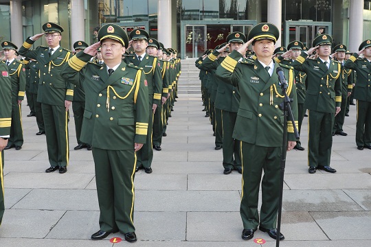“同志們,黨在號召、祖國在呼喚、人民在期待,時代催人奮進,我們要堅定愛黨的信念、強化愛國的情懷、盡好衛(wèi)國的責(zé)任、扛起強國的擔(dān)當(dāng),為黨的事業(yè)、為國家富強作出軍人應(yīng)有的貢獻!”升旗儀式后,總隊少將政治委員楊志強發(fā)表了熱情洋溢的致辭。