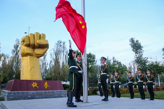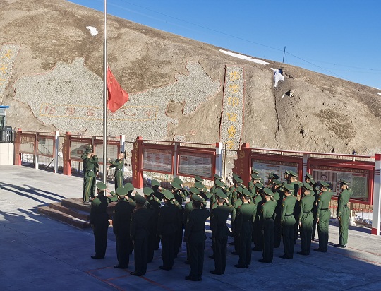 升旗是一項神圣的儀式,更是對靈魂的一次洗禮。當(dāng)天,該總隊各基層部隊也紛紛舉行了升旗儀式,為祖國慶生。在海拔4800多米的昆侖山,擔(dān)負(fù)青藏鐵路昆侖山隧道守護任務(wù)的官兵升起國旗。這里高寒缺氧、風(fēng)雪彌漫,條件極為艱苦,但官兵高喊“寧可生命透支,不讓使命欠賬”的口號,扎根高原、無悔奉獻。升旗儀式結(jié)束后,戰(zhàn)士羅昌強深情地說:“感覺所有堅守和辛苦,就為了這一面‘中國紅’!”