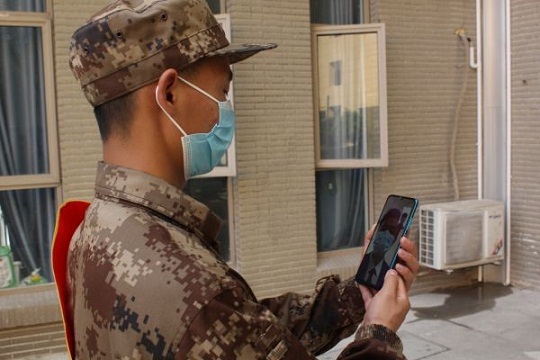 圖為預(yù)定新兵小朱撥打視頻電話與法院唐庭長進行交流。