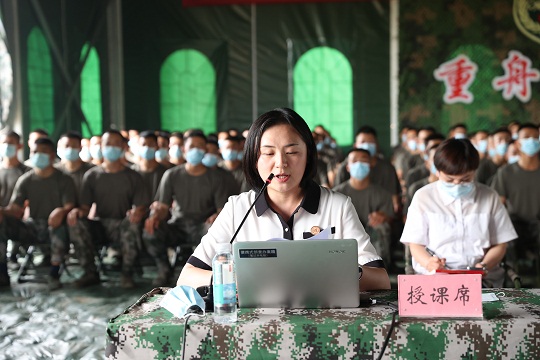 圖為“送法進軍營”活動中律師事務(wù)所律師給現(xiàn)場官兵授課。