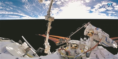 2022年9月17日,神舟十四號(hào)乘組航天員陳冬、蔡旭哲從問(wèn)天實(shí)驗(yàn)艙出艙,進(jìn)行艙外作業(yè)。圖片來(lái)自中國(guó)載人航天官方微博