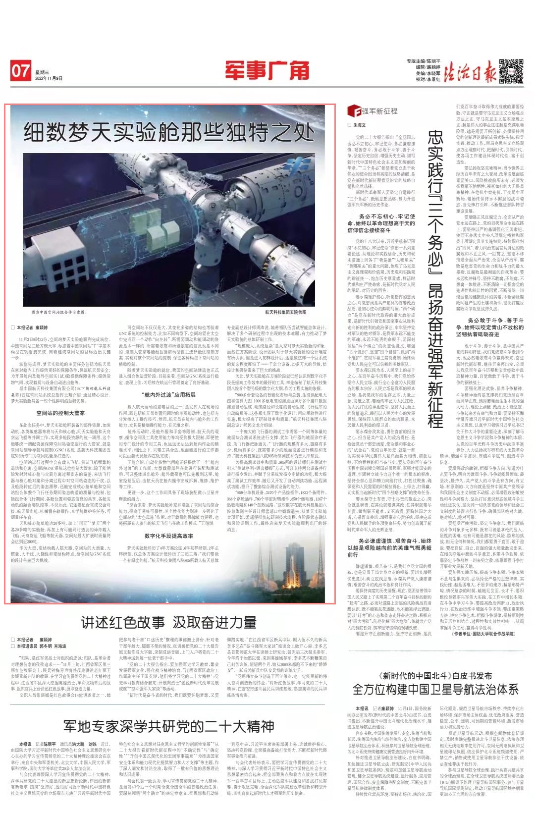 “綜合來看,夢天實驗艙補充并增強了空間站的綜合能力,提高了系統(tǒng)可靠性。其個性化能力則進一步強化了空間站的‘太空母港’作用,對于載荷的保障能力更強,也將拓展有人參與的航天飛行與在軌工作模式?!蓖跸枵f。