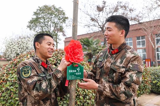 圖為新下隊官兵栽種泡桐樹,傳承紅色基因,擔當強軍重任。