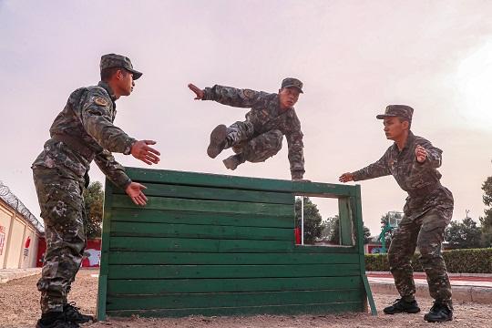 圖為官兵進行400米障礙訓練。