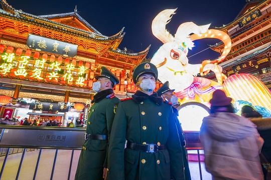 2月5日元宵佳節(jié),上海豫園張燈結(jié)彩、美輪美奐,一年一度的國家級非物質(zhì)文化遺產(chǎn)項(xiàng)目上海豫園新春民俗藝術(shù)燈會在此舉辦。節(jié)日恰逢周末,賞燈游園人群摩肩接踵。花燈下,武警上海總隊(duì)機(jī)動第一支隊(duì)官兵堅(jiān)守崗位,默默守護(hù)群眾平安賞燈。