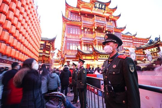 “和我第一年參加豫園執(zhí)勤任務(wù)時相比,今年的豫園花燈花樣更多了,節(jié)日的氛圍更濃了,游園群眾更多了,我們的責(zé)任也更重了?!焙蛻?zhàn)友們分享執(zhí)勤感受時,有著10次豫園元宵節(jié)執(zhí)勤經(jīng)驗(yàn)的二級上士王健說。
