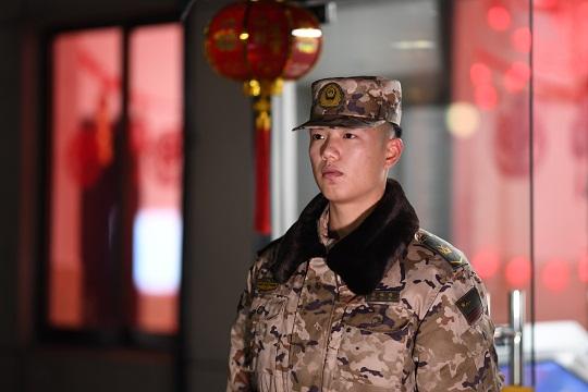 1月21日是農(nóng)歷除夕,武警江西總隊(duì)官兵堅(jiān)守執(zhí)勤崗位,守護(hù)一方平安,確保群眾度過一個(gè)平安祥和的新春佳節(jié)。圖為除夕夜,武警江西總隊(duì)警衛(wèi)勤務(wù)大隊(duì)哨兵周鈺博在南昌市某軍營堅(jiān)守執(zhí)勤哨位。本報(bào)通訊員 曹先訓(xùn) 攝