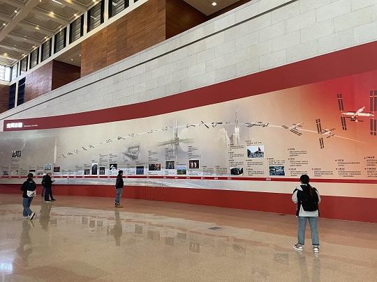 瀏覽“載人航天精神和文化”展板,上面布滿了“精神傳承”和“英模人物”的圖片,“授予:長征七號遙六試驗隊成功”等鮮紅的錦旗,醒目地懸掛在展板上方。