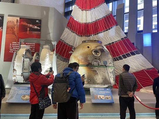 今天,中國國家博物館“逐夢寰宇問蒼穹——中國載人航天工程三十年成就展”大廳里人流如織。在寬闊的展廳里,參觀者不僅可以看到可步入艙內(nèi)參觀的天和核心艙1:1模型,空間站組合體1:4模型,長征二號F、長征七號、長征五號B運載火箭等模型,還可以看到航天服、火箭發(fā)動機等實物,新一代載人飛船及月面著陸器等未來載人登月主要飛行產(chǎn)品模型更是首次展出。
