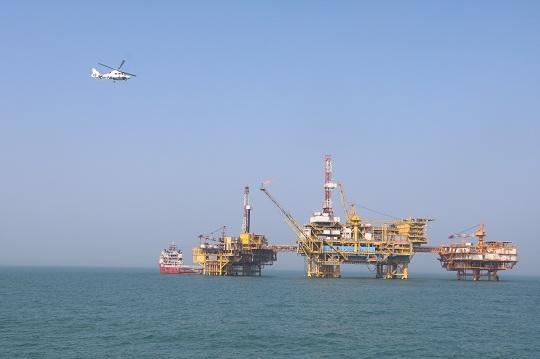 圖為航空巡視石油平臺(tái)。