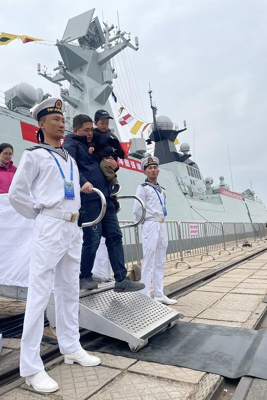 圖為4月22日參觀青島港3號碼頭艦艇開放活動的市民。本報記者 廉穎婷 攝
