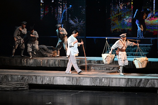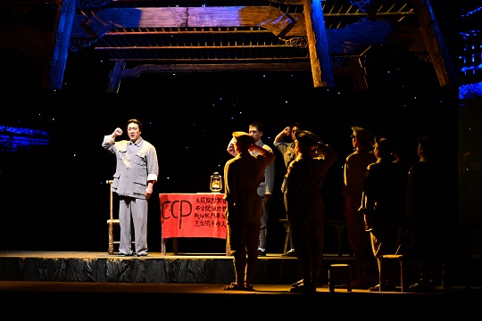 該劇是由江西省委組織部、江西省委宣傳部出品,江西文演集團(tuán)、江西省話劇團(tuán)創(chuàng)排的一部精品力作。舞臺上,八塊垂直冰屏、三層可調(diào)角度的升降臺,生動還原了典型歷史場景、革命斗爭氛圍和井岡山地區(qū)特色。演繹中,飽滿的故事情節(jié)、鮮活的人物形象、激烈的劇情沖突,實現(xiàn)了歷史邏輯、藝術(shù)邏輯和情感邏輯的有機結(jié)合,將政治性、思想性、藝術(shù)性、觀賞性融于一體,讓學(xué)員們沉浸式回顧那段崢嶸歲月。