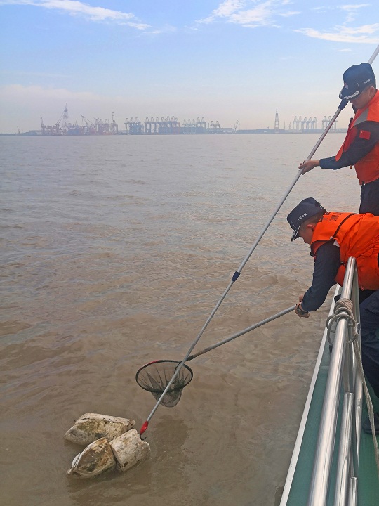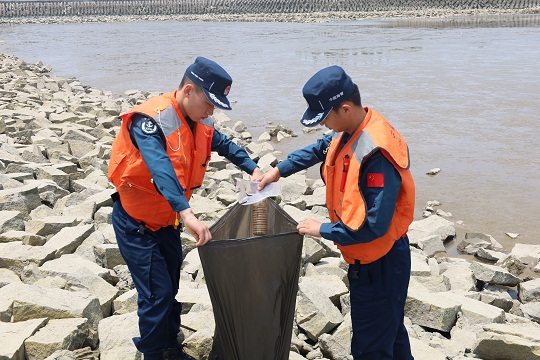 在日常轄區(qū)巡邏時(shí),上海海警局執(zhí)法員持續(xù)發(fā)揮“海洋凈化小分隊(duì)”作用,主動(dòng)為海洋“清潔”,對(duì)附近航道內(nèi)及海岸堤壩上的各類(lèi)垃圾進(jìn)行清理。