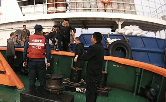 圖為海警執(zhí)法員成功救起11名船員。