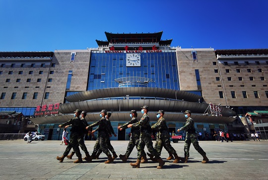 圖為北京西站執(zhí)勤哨兵正在前往哨位。