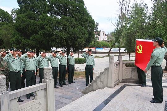 在丁佑君烈士陵園,“我宣誓,我志愿加入中國共產黨,擁護黨的綱領,遵守黨的章程……”全體黨員在紀念碑前整齊列隊,面對黨旗舉起右拳,莊嚴宣誓。