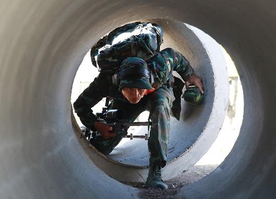 圖為參賽隊員在進行潛行狙擊課目競賽。徐偉 攝