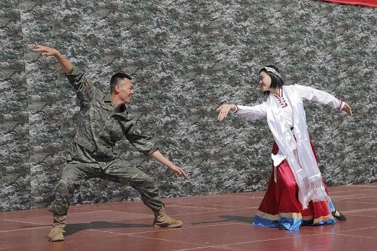 演出以歌曲、情景劇、歌伴舞、器樂演奏等多種文藝形式呈現(xiàn)。負(fù)責(zé)編排節(jié)目的文化干事張津梁介紹說,他們巧妙地把黨的二十大提出的新觀點、新思想、新戰(zhàn)略、新要求融入每個節(jié)目中,既引導(dǎo)觀眾回顧歷史,又帶領(lǐng)他們展望未來,既兵味戰(zhàn)味十足,又充滿藏族民俗文化風(fēng)情,有熱度、帶鮮味,切實把黨的理論政策和溫暖關(guān)懷送到群眾心坎上。