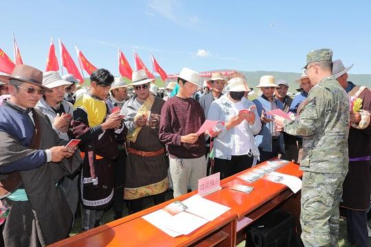 之后,官兵在現(xiàn)場開展了民族宗教政策宣講、醫(yī)療巡診、法律咨詢等活動,為農(nóng)牧民提供實用的綜合服務(wù)。部分官兵還和群眾圍坐在草地上,圍繞國防建設(shè)、增收致富、生態(tài)環(huán)保、雙擁共建等話題聊熱點、談心得、話感悟。“只要跟著黨和國家的好政策走,咱們的家園一定越來越美麗,咱們的日子一定越過越紅火。”武警青??傟牶1敝ш犝挝瘑T葉華說。