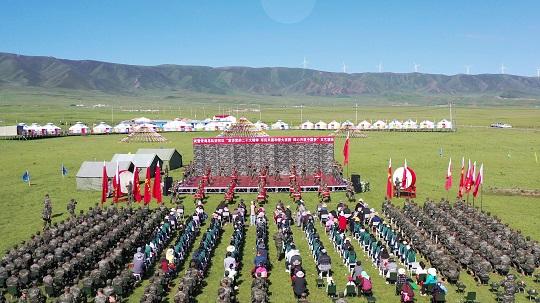 7月17日,在草原最美的季節(jié),武警青海總隊“宣講黨的二十大精神,軍民共建和諧大家園,同心共筑中國夢”文藝演出走進青海省海北藏族自治州,當(dāng)?shù)啬撩袢罕姾筒糠竹v訓(xùn)官兵歡聚一堂。