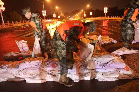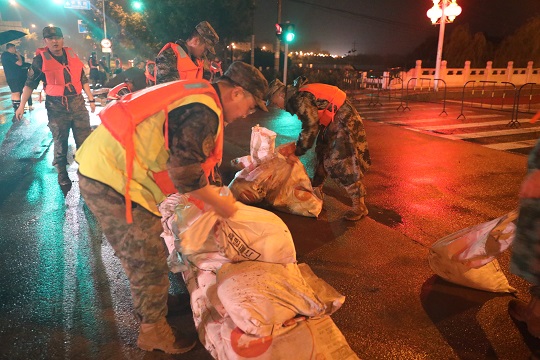 7月31日至8月2日,北京市懷柔區(qū)懷河水位持續(xù)高漲,接到上級命令后,中部戰(zhàn)區(qū)空軍地導(dǎo)某旅組織40余人防汛分隊,赴懷柔區(qū)大杜兩河村大橋和廟城鎮(zhèn)進行支援,開展防汛沙袋裝填、防汛墻構(gòu)筑等工作,險情得到有效控制。目前,該部官兵仍然堅守在一線,執(zhí)行警戒巡邏任務(wù)和橋梁管控任務(wù)。