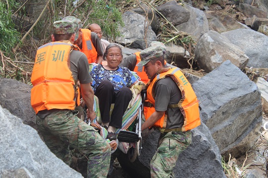 兩處橋梁架通后,王旭帶領(lǐng)連隊24小時在橋邊執(zhí)勤引導,目前,已經(jīng)順利通載各類車輛1萬多車次、轉(zhuǎn)運受災村民3000余人次。