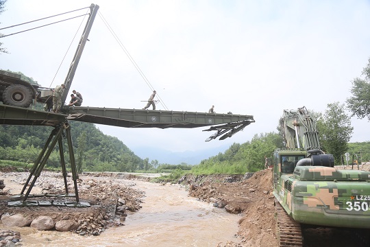 “在災區(qū)百姓的滿懷期望中架設,一次順利成功是我們唯一的選擇?!?8分鐘后,一座重型支援橋成功將兩岸連通。