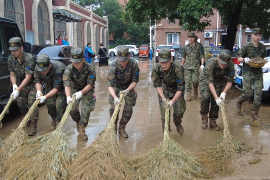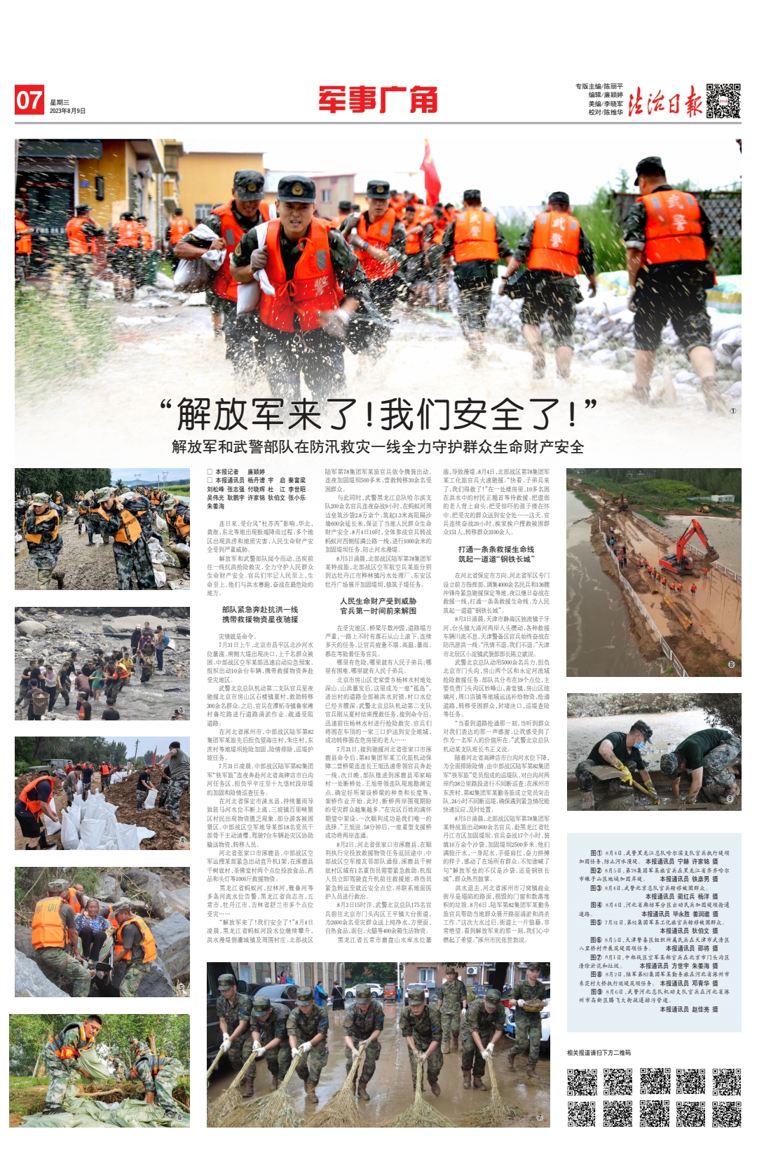 在河北省保定市方向,河北省軍區(qū)專(zhuān)門(mén)設(shè)立前方指揮部,調(diào)集4000余名民兵和136艘沖鋒舟緊急馳援保定等地,夜以繼日奮戰(zhàn)在救援一線(xiàn),打通一條條救援生命線(xiàn),為人民筑起一道道“鋼鐵長(zhǎng)城”。