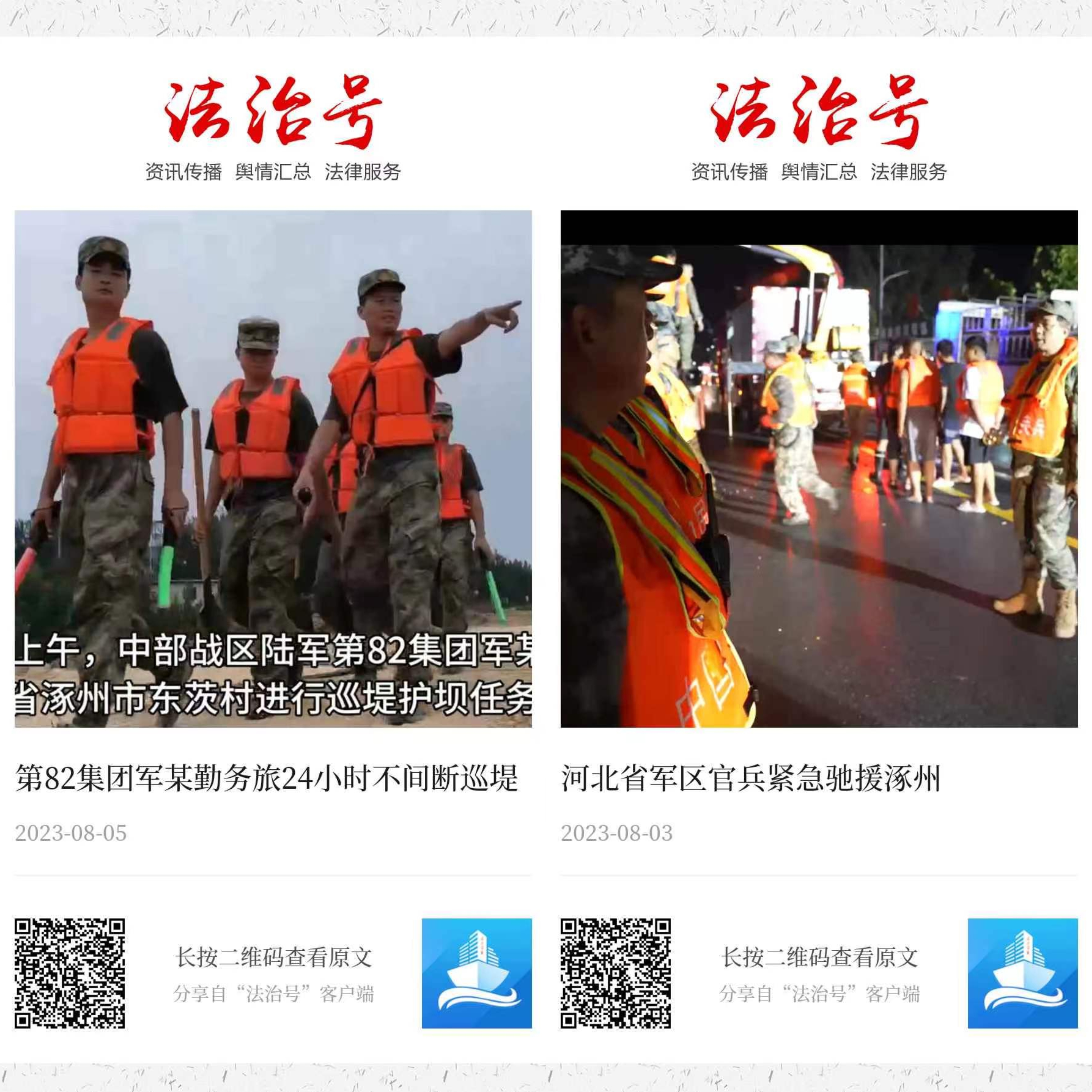 在河北省涿州市,中部戰(zhàn)區(qū)陸軍第82集團(tuán)軍某旅先后擔(dān)負(fù)望海莊村、朱莊村、東茨村等地堤壩搶險(xiǎn)加固、險(xiǎn)情排除、巡堤護(hù)坡任務(wù)。