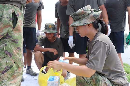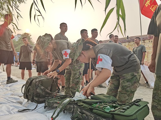 耿穎慧到達(dá)任務(wù)區(qū)后,第一時間投入工作??焖俅罱镁茸o(hù)所,歸納整理藥品,參加堤壩巡診……8月8日,迎戰(zhàn)洪峰前,她主動加入到堤壩加固任務(wù)中。裝沙、扎口、搬運、筑壩……哪里需要哪里就有她的身影。汗水打濕衣襟,鍬鎬磨出血泡。休息調(diào)整期間,參加過維和任務(wù)的耿穎慧來到受災(zāi)群眾中,為大家巡診擦藥。