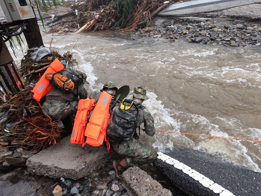 在其他組,同樣的溫暖故事也在發(fā)生。據(jù)統(tǒng)計,這一天,3支救援分隊的徒步行程累計130余公里,共排查村莊19個,營救群眾4名,發(fā)現(xiàn)并通聯(lián)某電廠受困群眾26名,協(xié)助地方將該鎮(zhèn)所有失聯(lián)村落全部恢復(fù)聯(lián)絡(luò)。在防汛指揮部,鎮(zhèn)政府工作人員對官兵們豎起了大拇指。