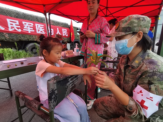 “阿姨,我的腿不癢不疼了!長(zhǎng)大后,我也想當(dāng)軍醫(yī)……”午餐過(guò)后,小詩(shī)淇見(jiàn)孟博那里沒(méi)人就診,就舉著剛在地里采摘的一小把野花跑了過(guò)去,興奮地對(duì)她說(shuō):“軍醫(yī)阿姨,我想給您敬個(gè)禮!”