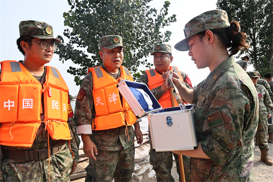 根據(jù)上級(jí)統(tǒng)一部署,天津警備區(qū)干休所“輕騎兵”特色醫(yī)療隊(duì)依令抵達(dá)天津市靜海區(qū)臺(tái)頭鎮(zhèn),對(duì)抗洪一線解放軍、武警官兵、民兵進(jìn)行醫(yī)療巡診和緊急救治。