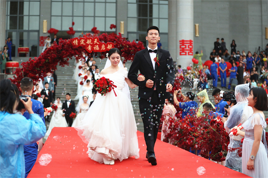 一項項儀式,將集體婚禮活動引向高潮。此次參加集體婚禮的航天工作者大多來自一線崗位,他們常年執(zhí)行高密度航天發(fā)射任務(wù),缺少時間與愛人團聚,有的婚期更是一再推遲。中心為一對對新人搭建起盛大的舞臺,舉辦隆重的集體婚禮,讓祖國見證他們的幸福與榮光。