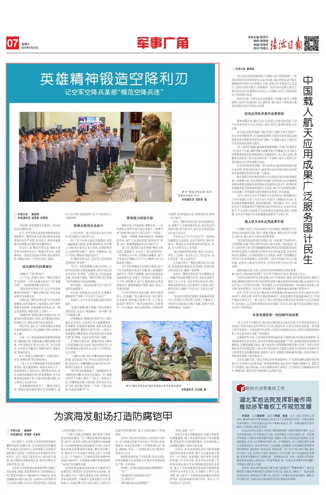正式演習那天,“模范空降兵連”從天而降,運用演練的新戰(zhàn)術出奇制勝,快速完成目標奪控任務,贏得一致稱贊。