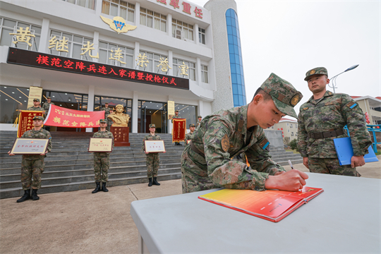 圖為“模范空降兵連”組織新兵入連儀式。謝程宇 攝