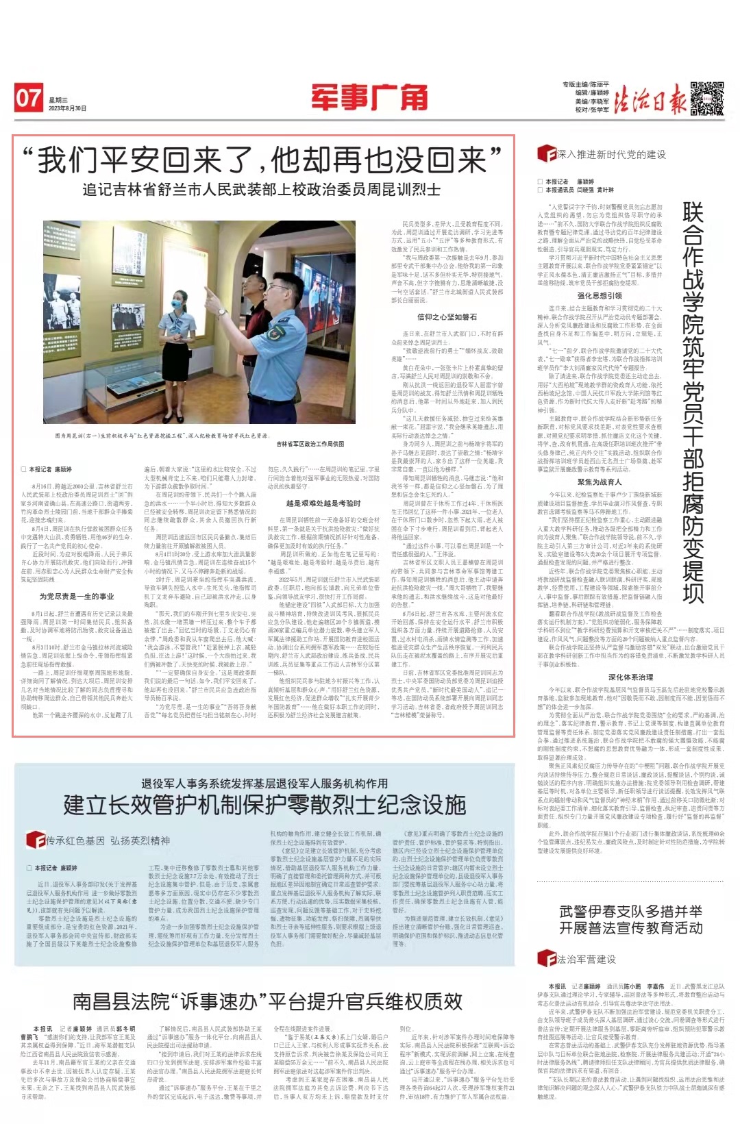 “我與周政委第一次接觸是去年9月,參加部里專武干部集中辦公會(huì)。他給我的第一印象是軍味十足,話不多但樸實(shí)無華,特別接地氣。聲音不高,但字字鏗鏘有力,思維清晰敏捷,沒一句空話套話?!笔嫣m市北城街道人民武裝部部長白麗麗說。